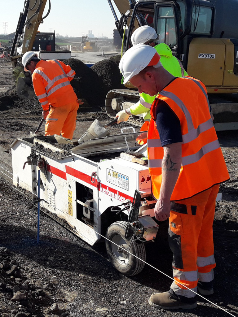 géppel bővítette eszközparkját, amivel sokkal hatékonyabban, kevesebb élőmunkaigénnyel napi 500-600 métert szegély építhető meg. Az elmúlt évben közel 70 km szegélyt épített meg.